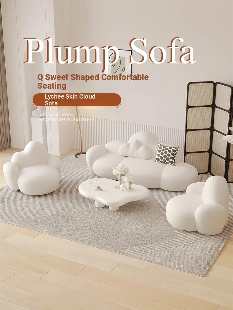 Modern Nordic Cream Fabric Sofa Set - Curved Cat Scratch Resistant Design for the Living Room - Stylish and Minimalist Cloud Shape, Perfect for Any Home Layout
