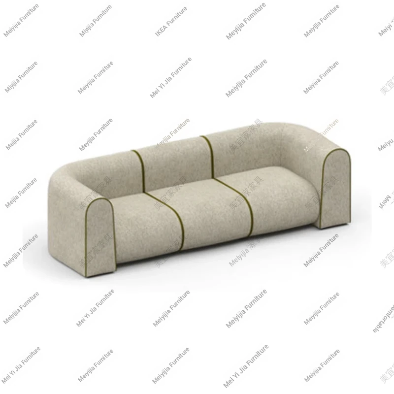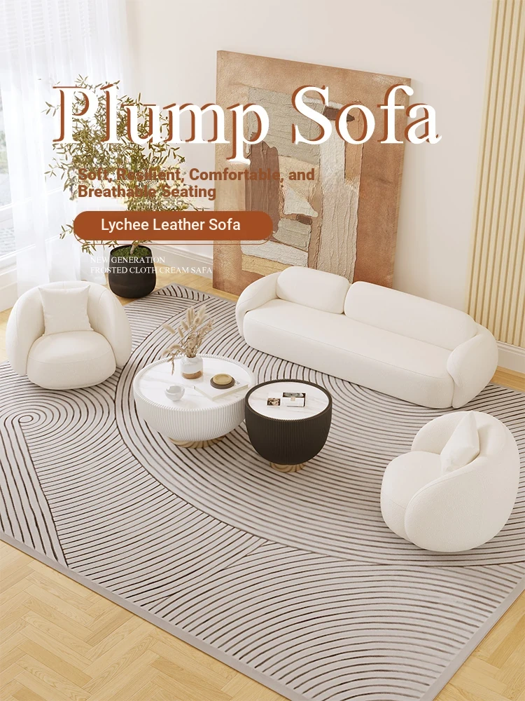 Nordic Minimalist Cream Pea Sofa – Designer Curved Lamb Fleece Three-Seater for Luxurious Living Rooms, Perfect for Casual Gatherings and Stylish Reception Areas.