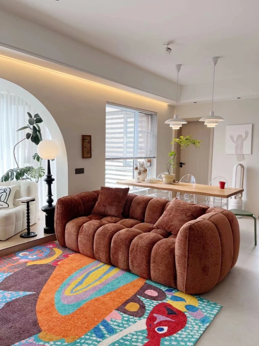 Nordic Minimalist Designer Vintage French Wabi-Sabi Style Modular Lambswool Sofa for Living Room – A Touch of Elegance and Comfort in Every Module!