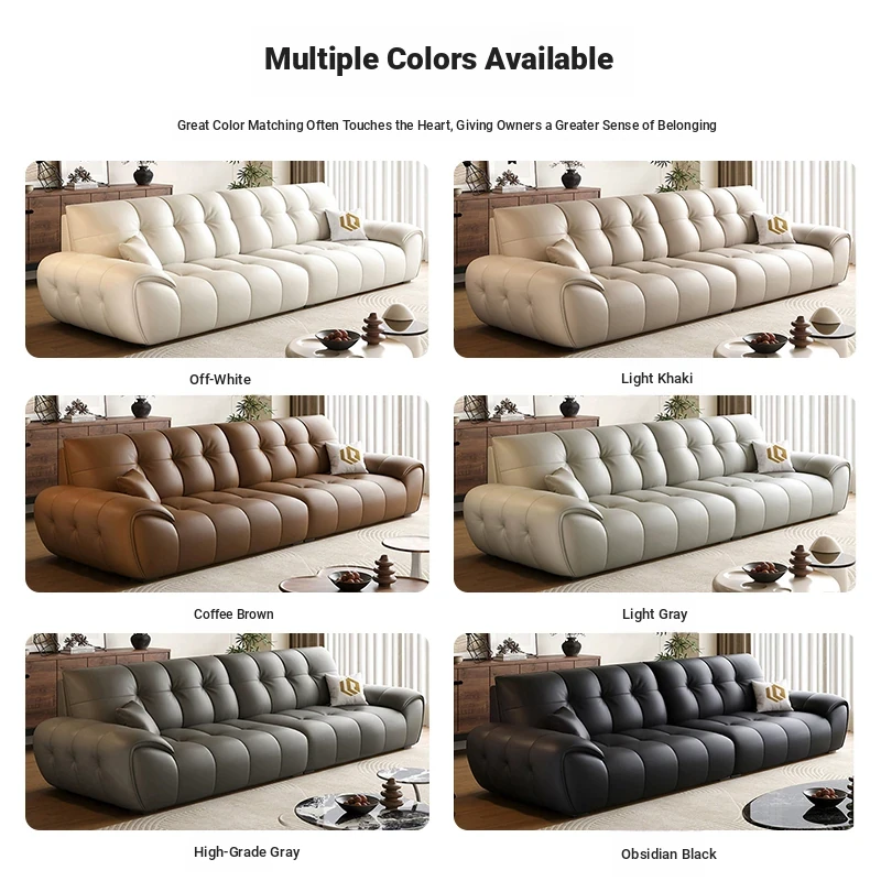 Italian Minimalist Napa Leather Sofa - Modern Simple Design for Small Living Rooms, High-End Cat Scratch Resistant Sofa Set