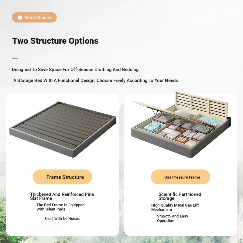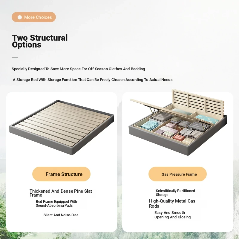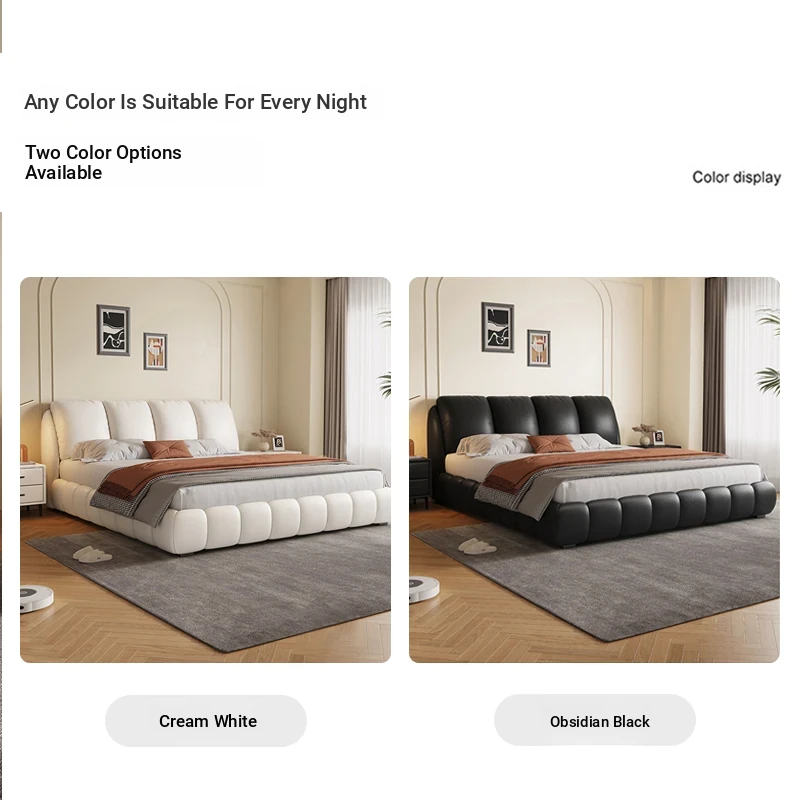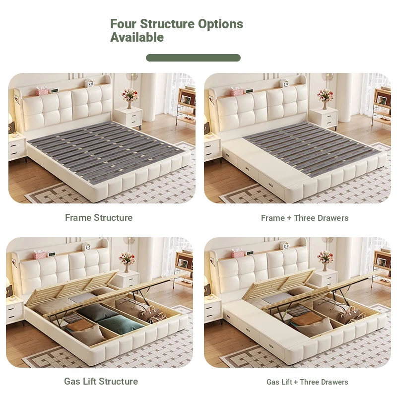 Cream Leather Upholstered 1.8m Bed with High Storage Box – Modern Minimalist Tatami Style for Couples, Perfect for Your Dream Bedroom! (1.5m option also available)