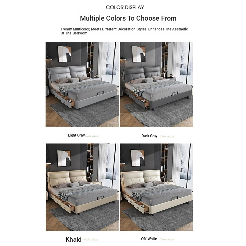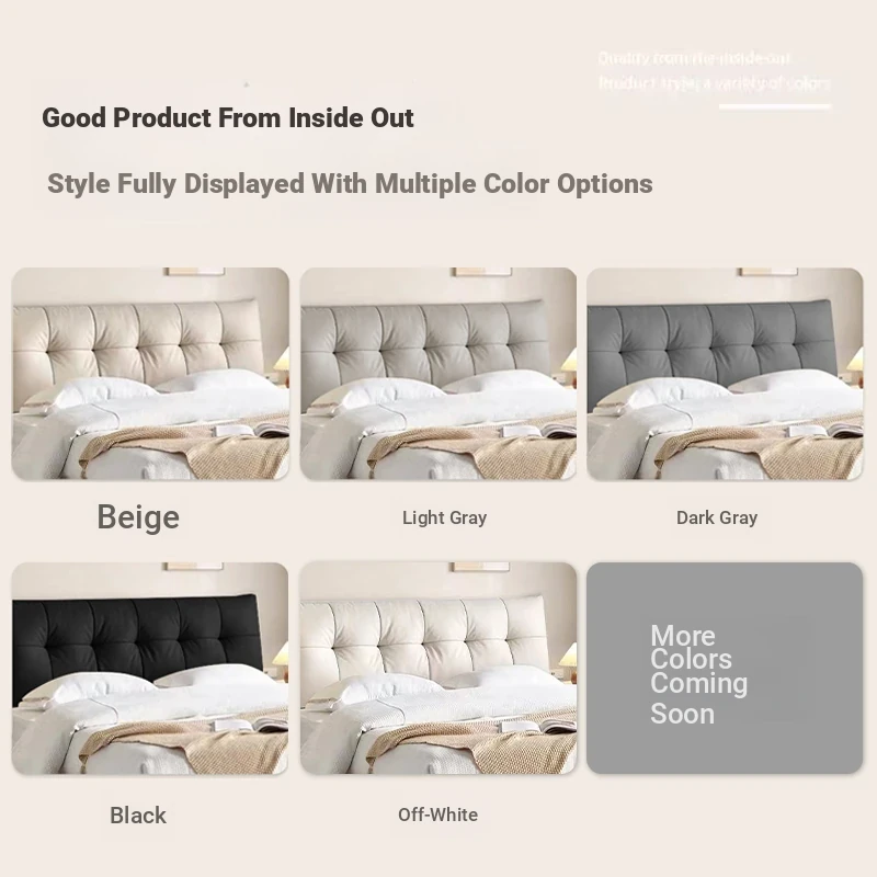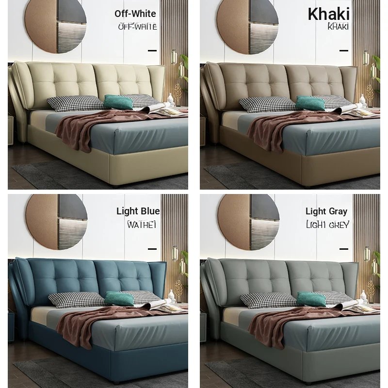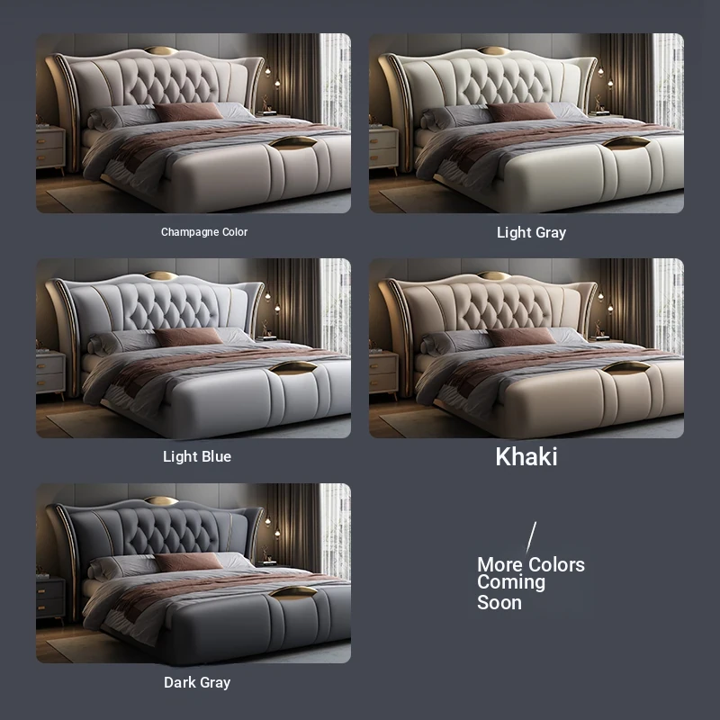 Nordic Minimalist Luxury Soft Bed for Spacious Bedrooms – Modern Designer Double Bed with Premium Leather Upholstery and Smart Storage Solution for Your Master Bedroom. Perfect for Couples Looking for Elegance and Comfort!