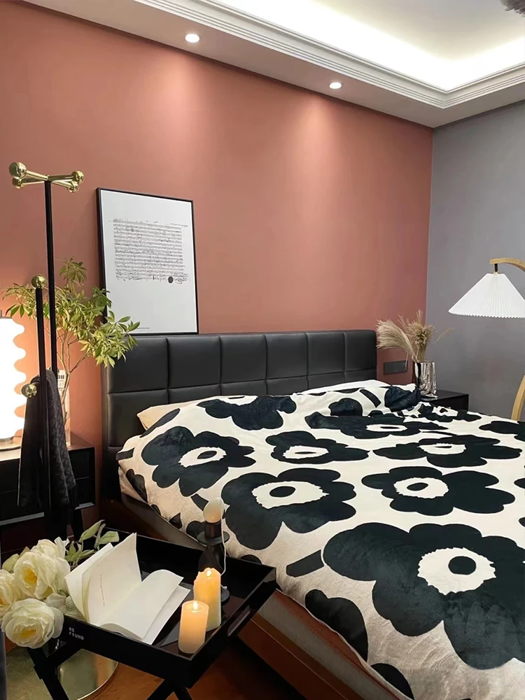 Modern Minimalist Luxury Bed - Stylish Instagram-Inspired Design for Small Spaces, Featuring an Elegant Italian Black Leather Frame, Perfect for Chic Master Bedrooms.