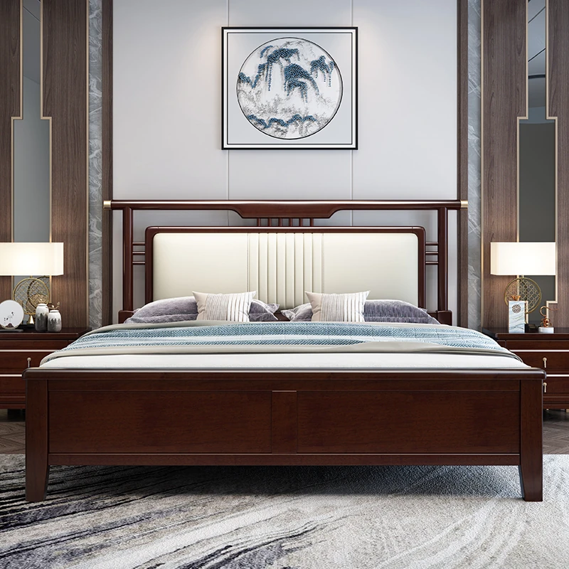 Elegant New Chinese Solid Wood Bed - Stylish 1.8m Double Storage Bed for Modern Bedrooms - Direct Factory Sale - Perfect for Couples and Family Use