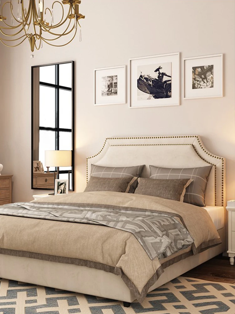 French Cream Style Retro Bed | Modern Minimalist Gilent Light Luxury Fabric Double Bed | Ideal for Boutique Hotels and Model Rooms | Solid Wood Construction