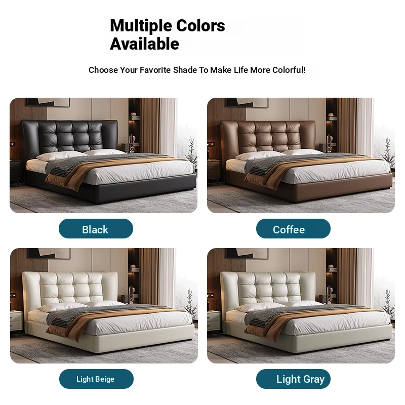 2024 New Modern Minimalist Luxury Leather Bed for Master Bedroom - Elegant Full-Size Soft Napa Leather Upholstered Double Bed, Perfect for Romantic Spaces