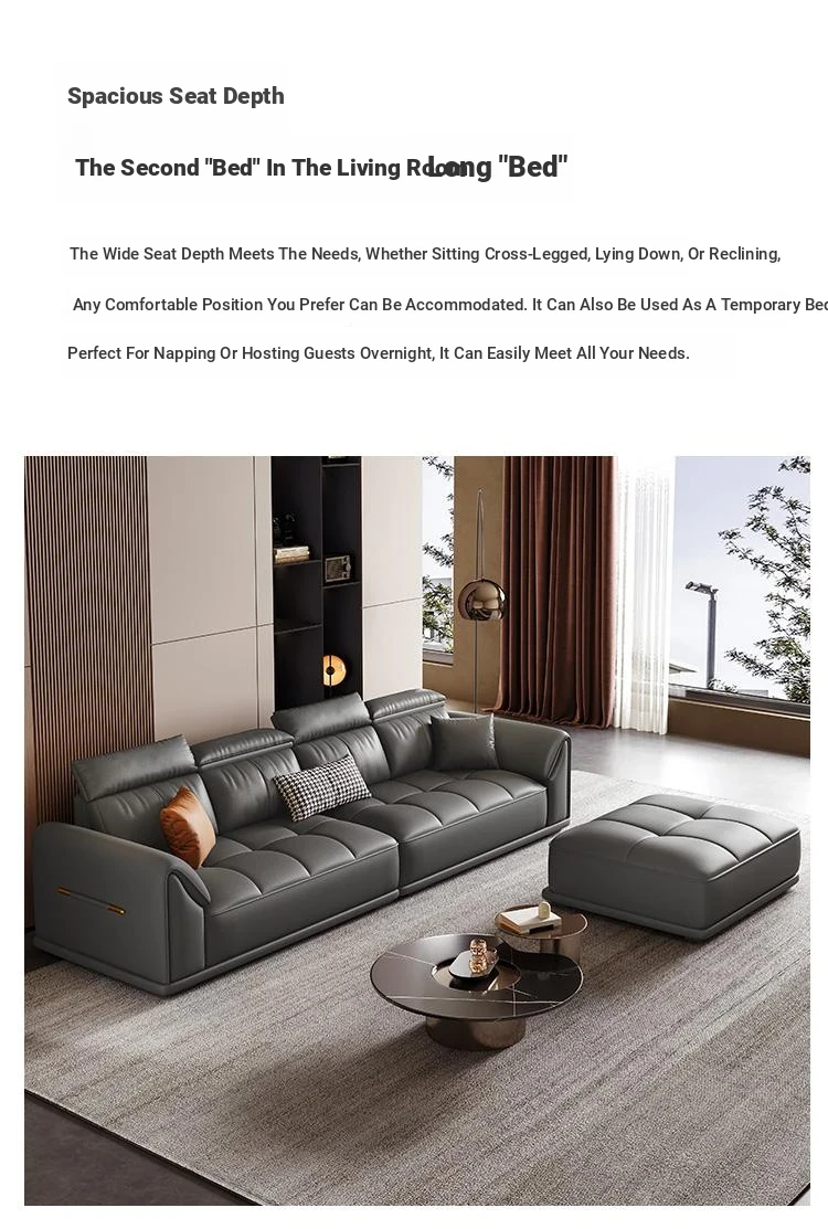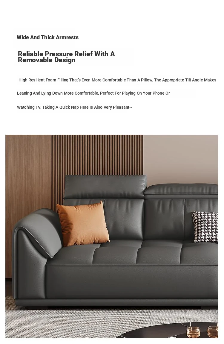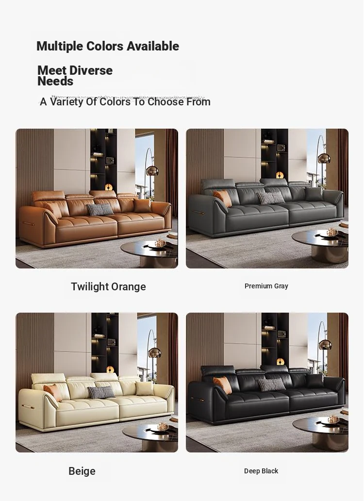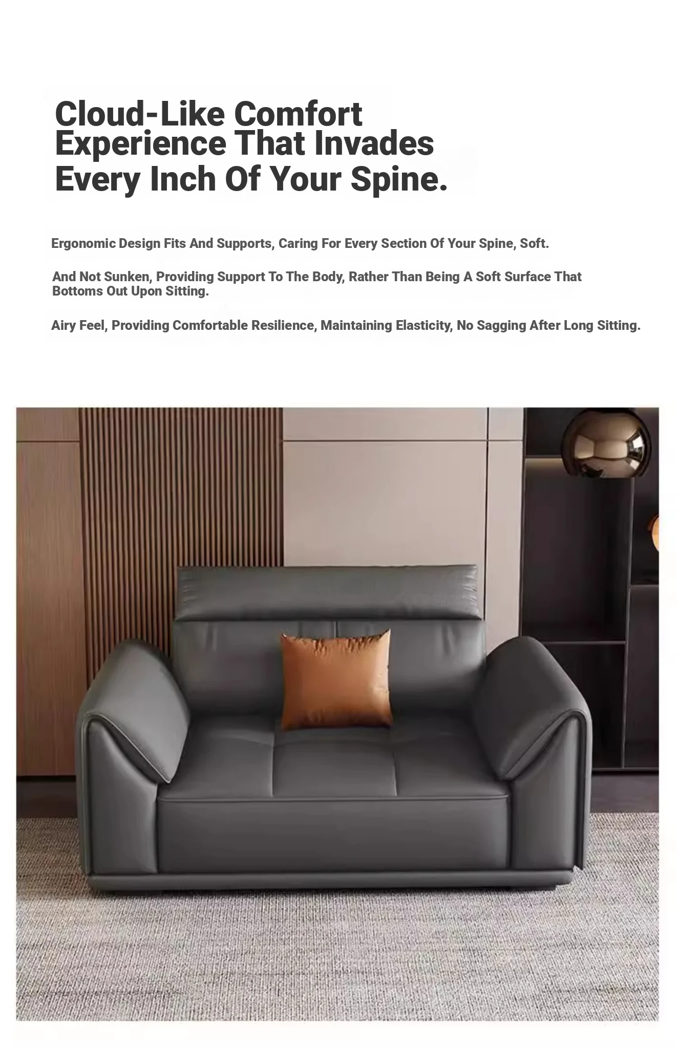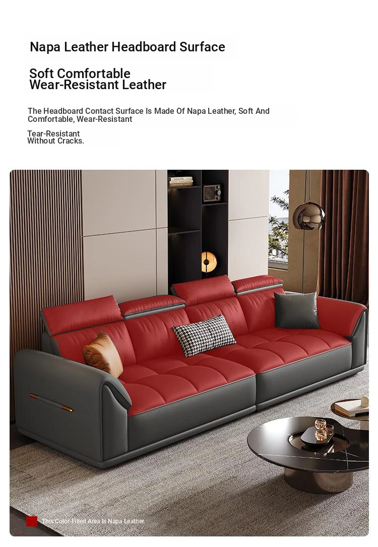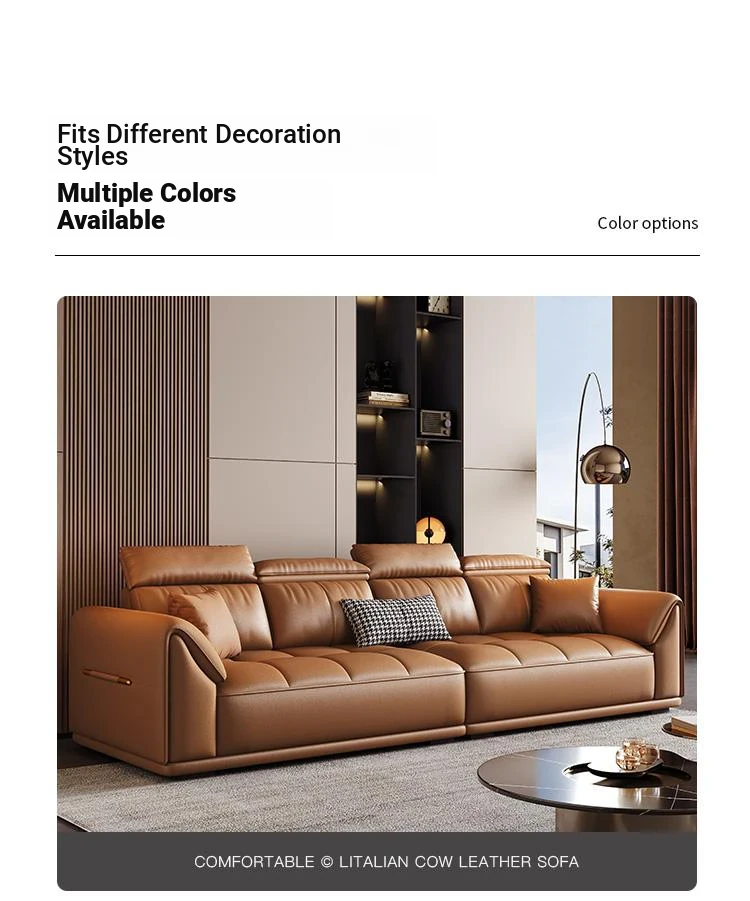 Italian Minimalist Napa Leather Sofa - Stylish and Space-Saving Design for Small Apartments, Perfect for Modern Living Rooms, Accommodates 3-4 People, Luxurious Comfort and Contemporary Elegance.
