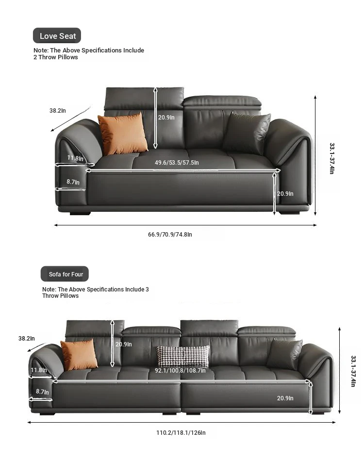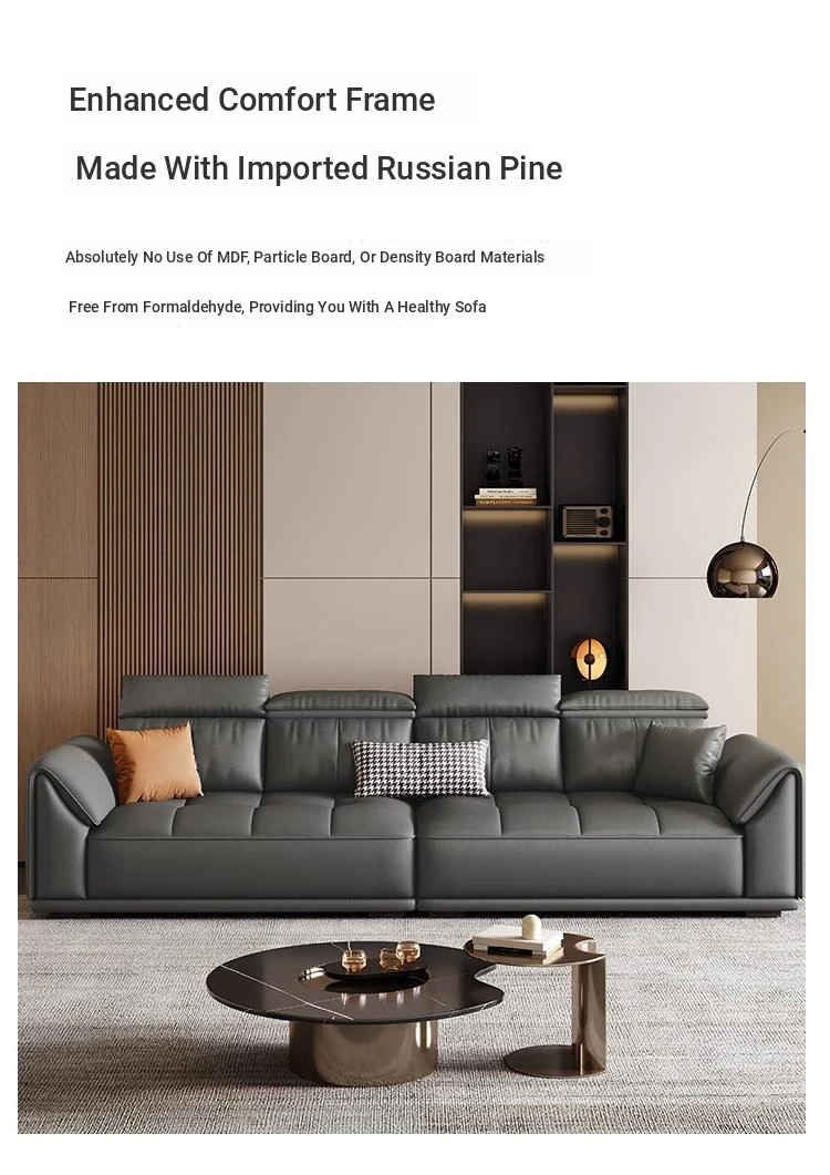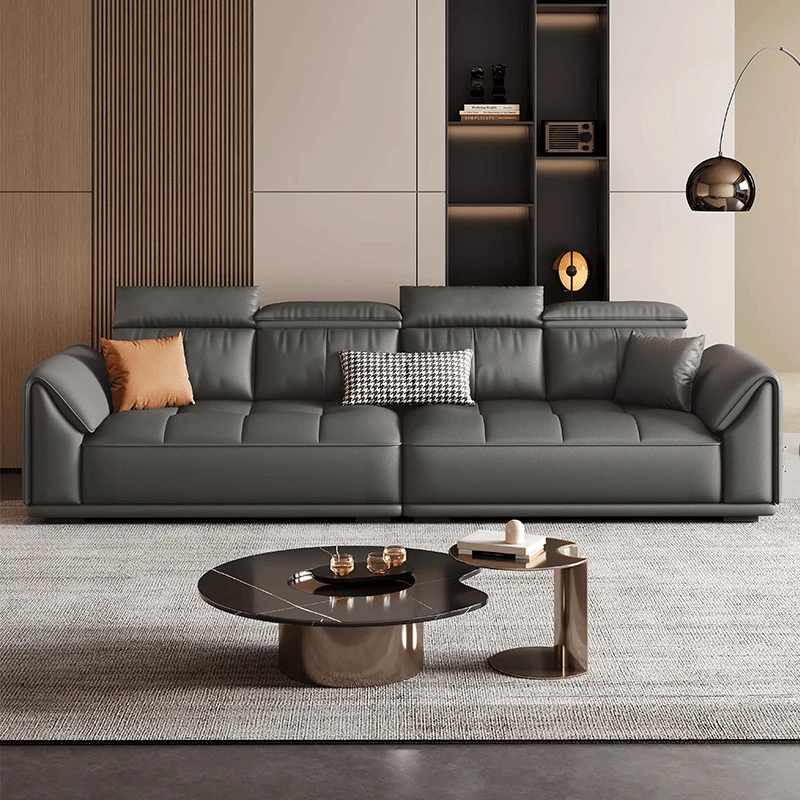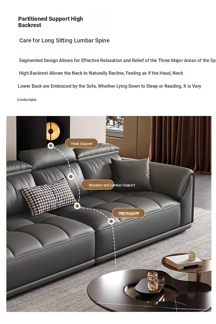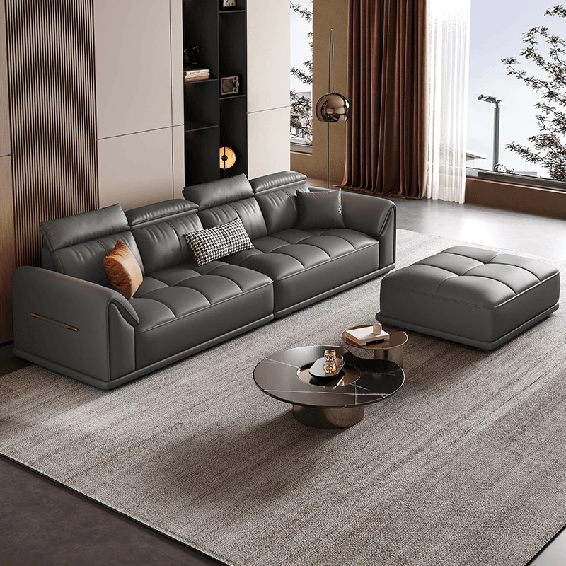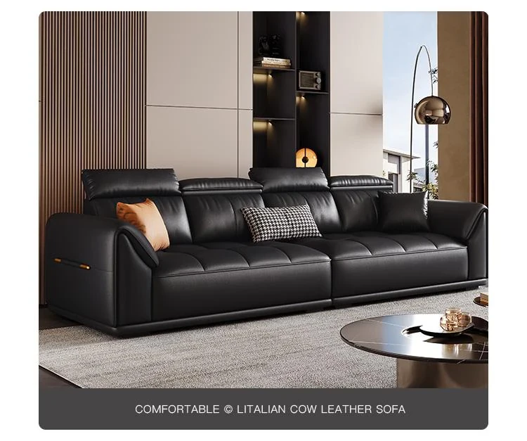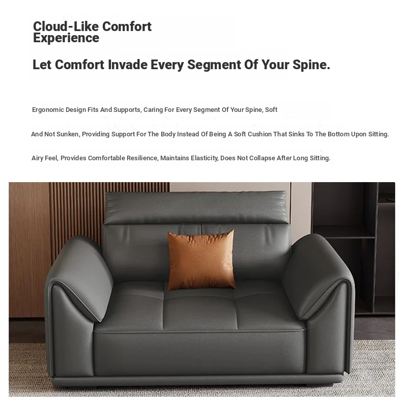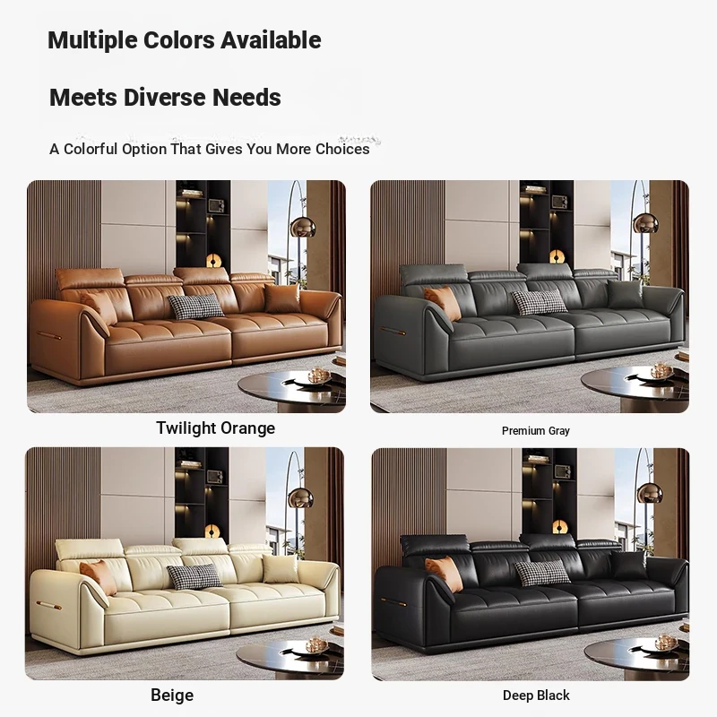 Italian Minimalist Napa Leather Sofa - Stylish and Space-Saving Design for Small Apartments, Perfect for Modern Living Rooms, Accommodates 3-4 People, Luxurious Comfort and Contemporary Elegance.