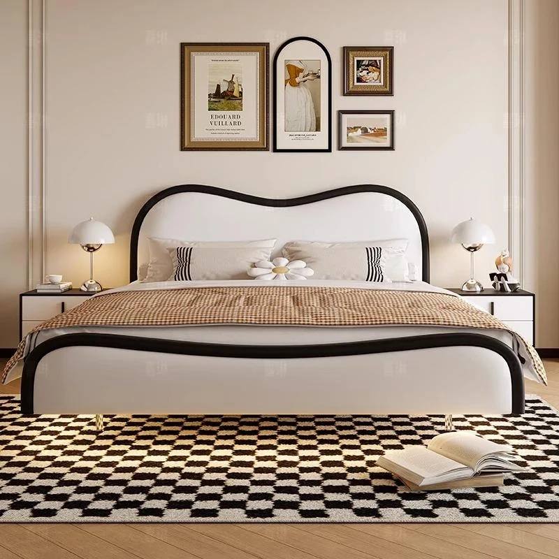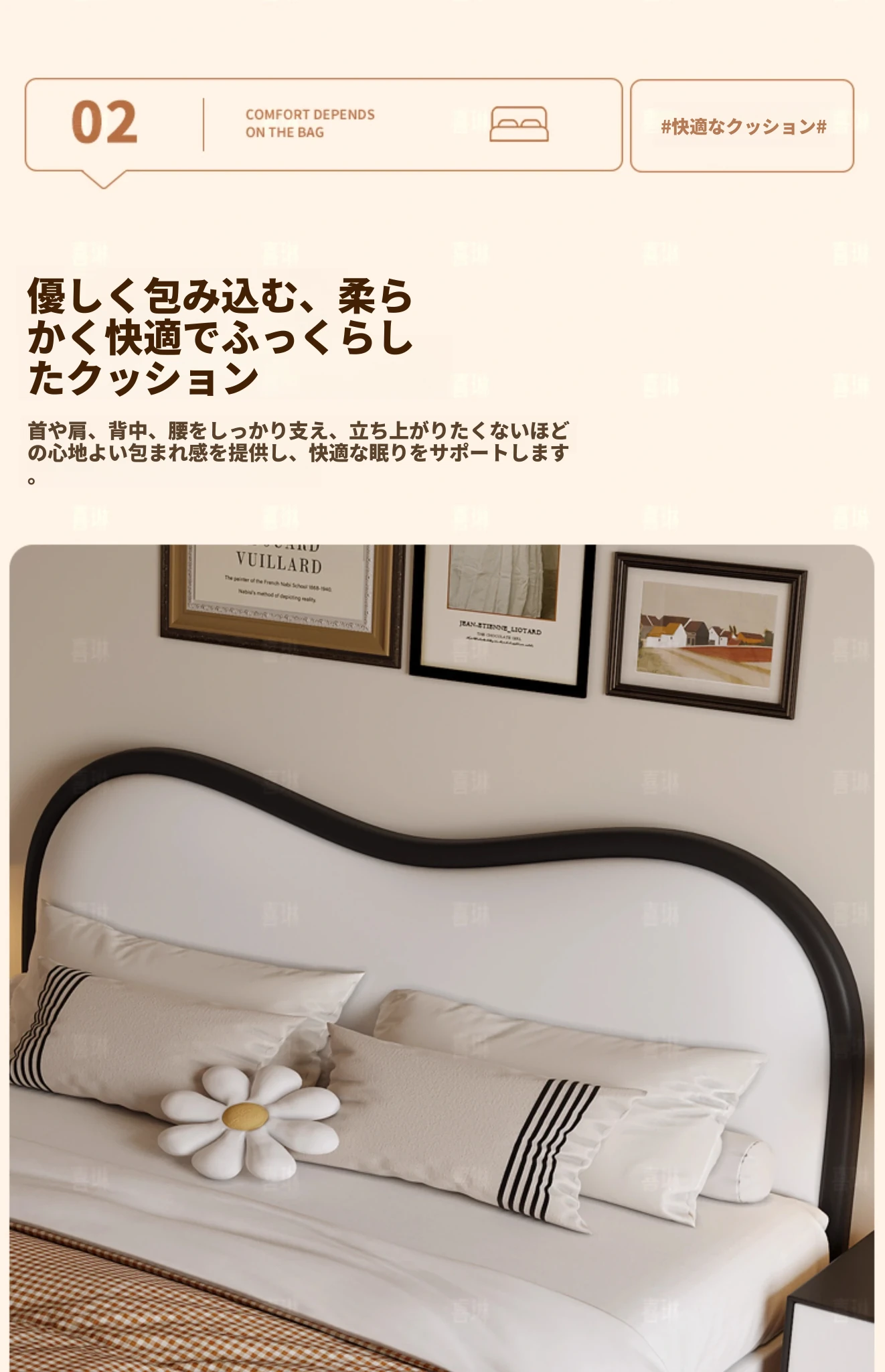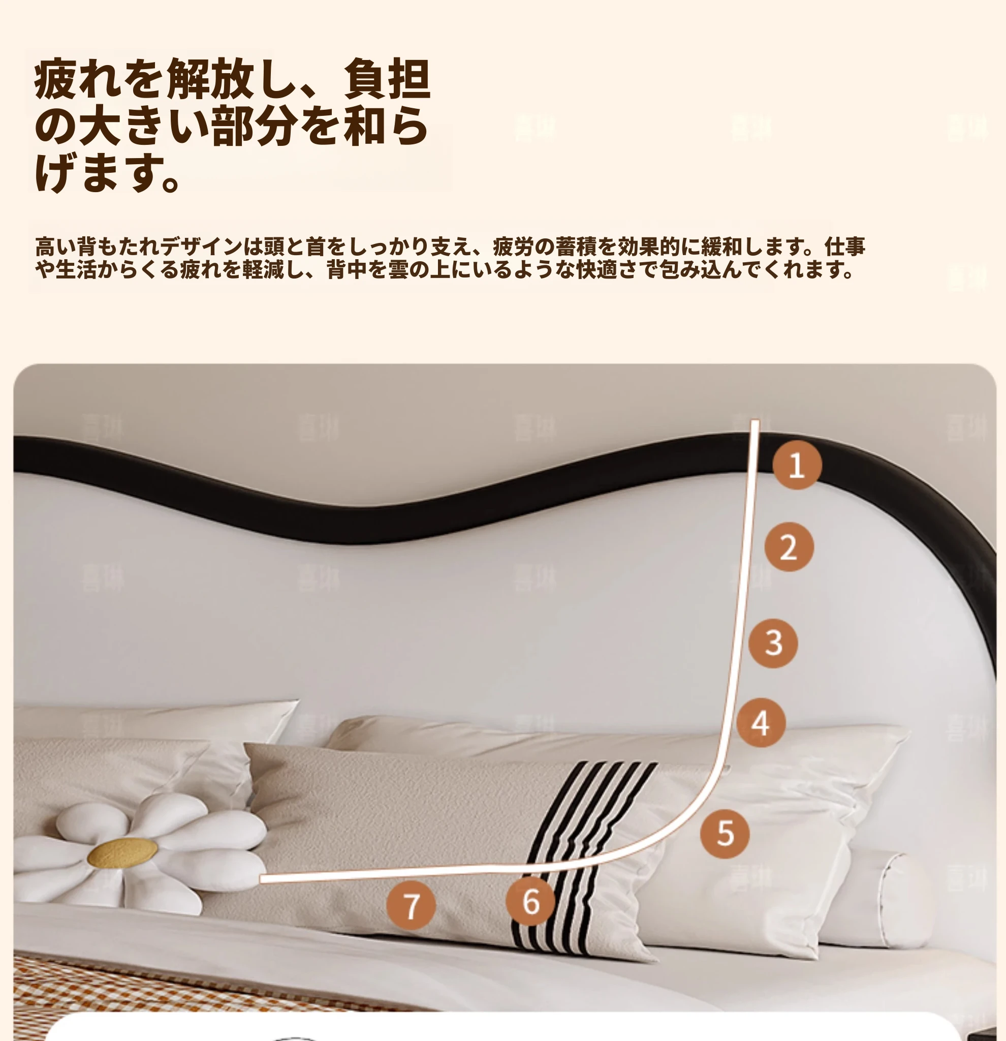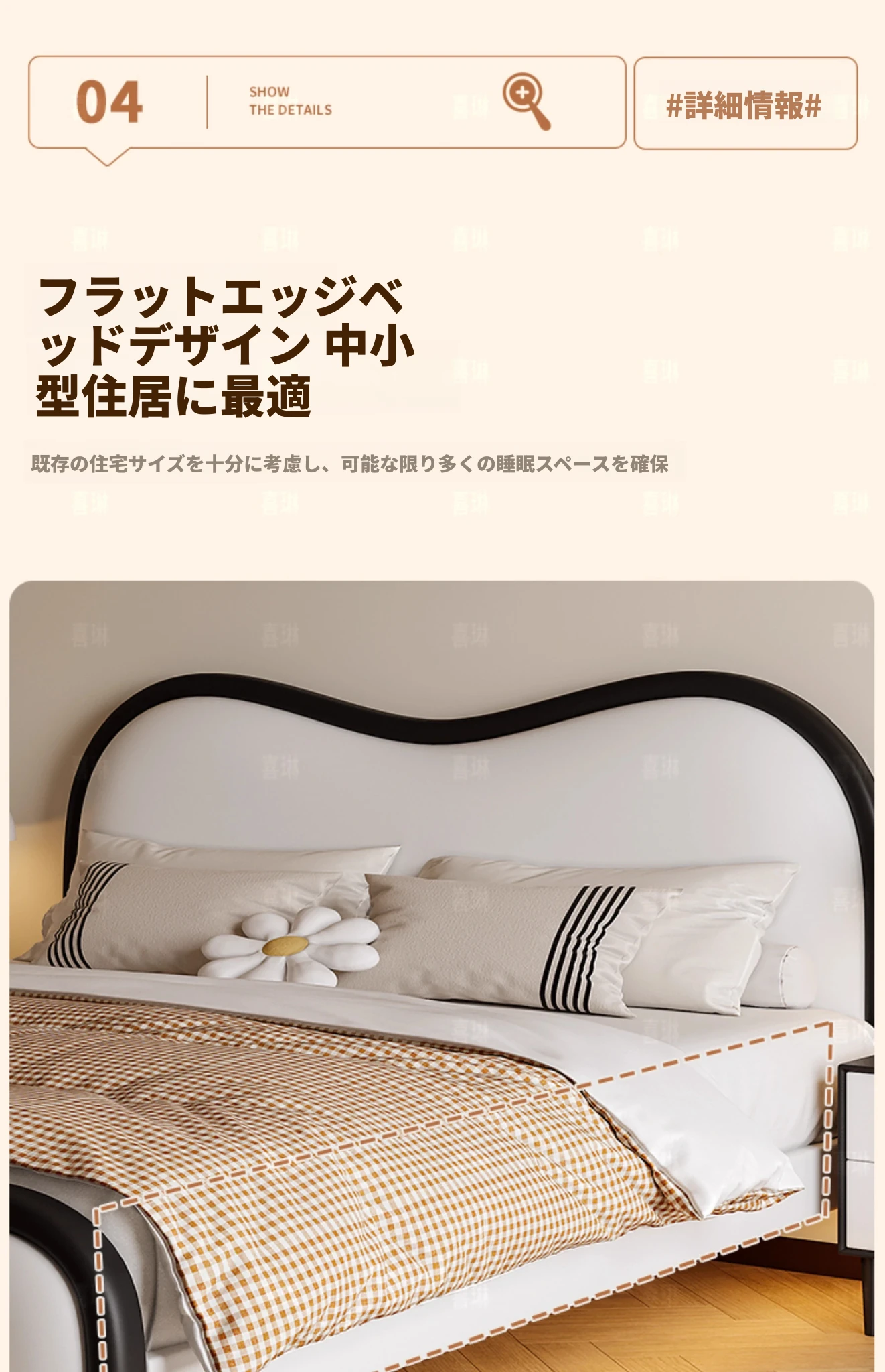 フレンチクリーム風プリンセスベッド|モダンな黒白コンビネーションのウェーブデザイン|イタリアンミニマル真皮使用|ふわふわテディベルベット|女の子にぴったりな夢の婚礼ベッド!