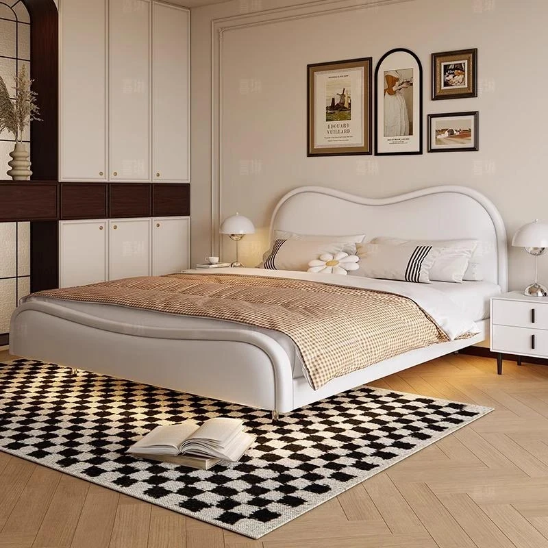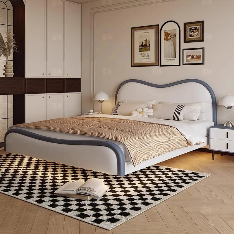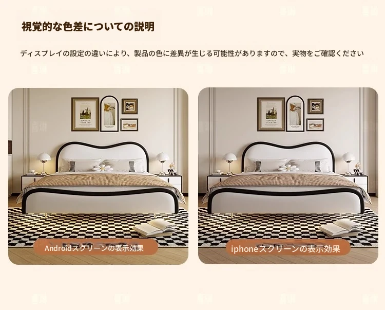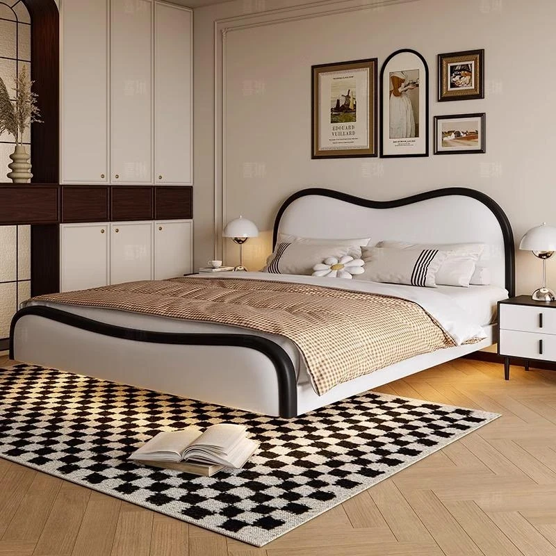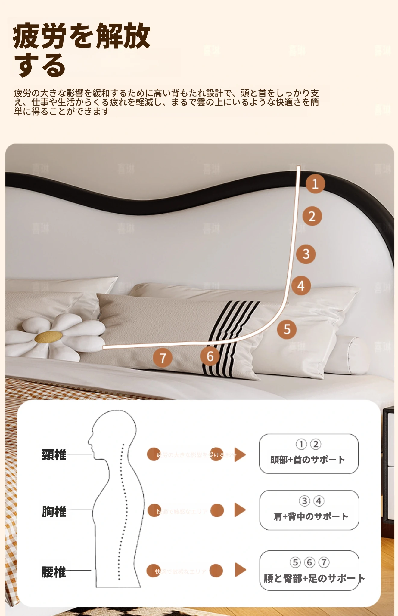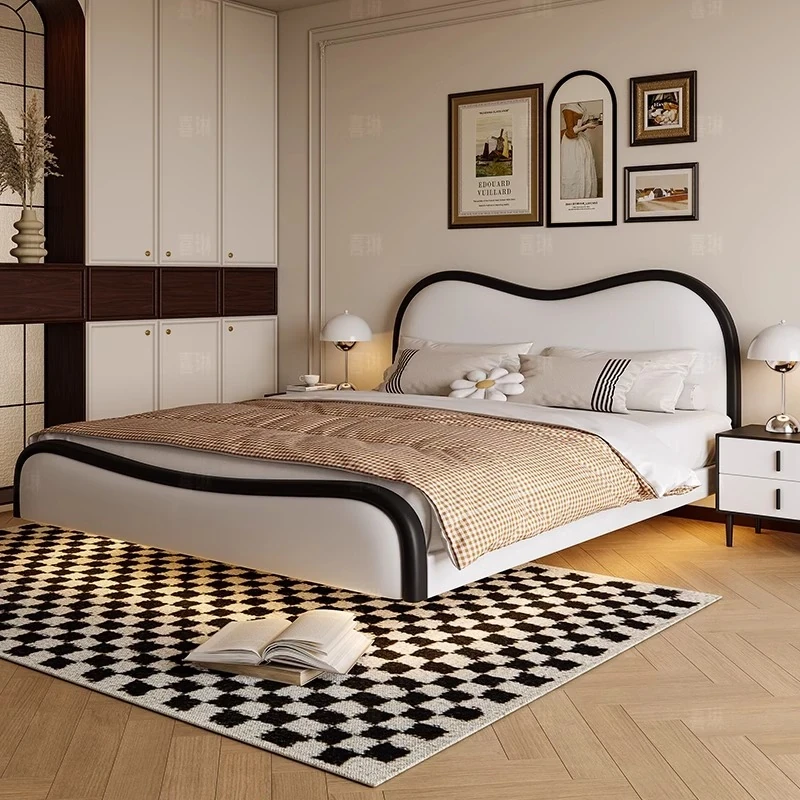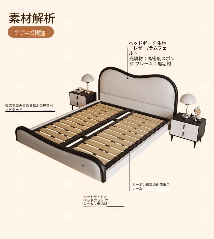 フレンチクリーム風プリンセスベッド|モダンな黒白コンビネーションのウェーブデザイン|イタリアンミニマル真皮使用|ふわふわテディベルベット|女の子にぴったりな夢の婚礼ベッド!