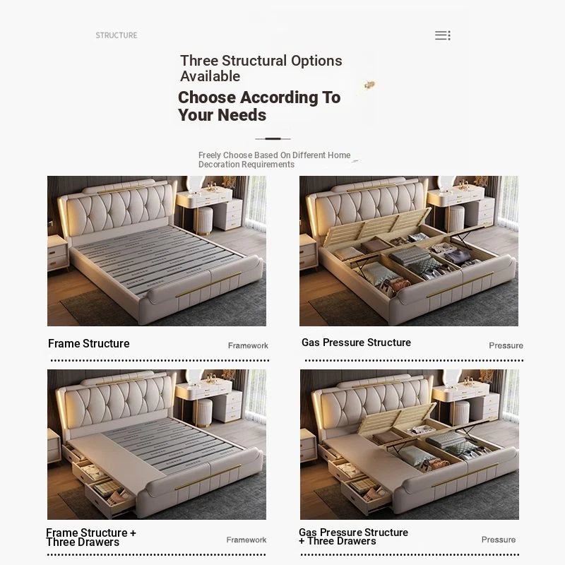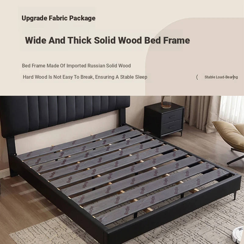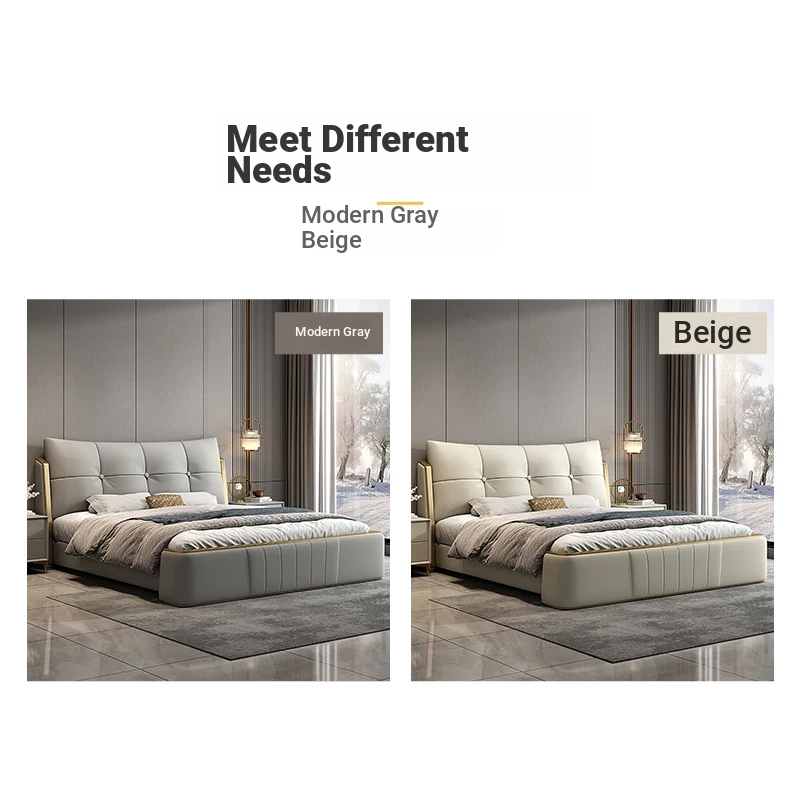 Modern Minimalist Luxury Leather Bed with Soft Package - 1.8m Genuine Leather Double Bed for Master Bedroom, Stylish Storage Solution, Perfect for Your Dreamy Space!