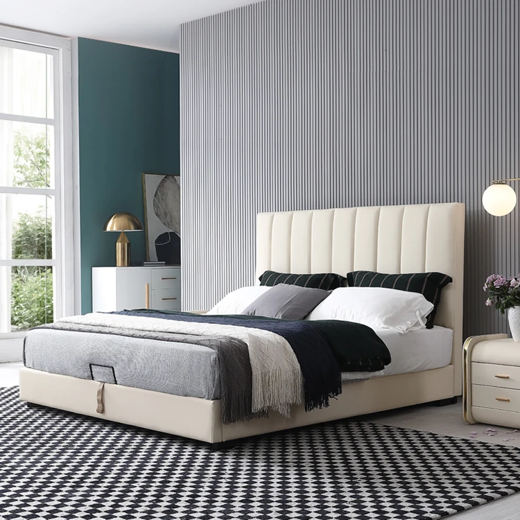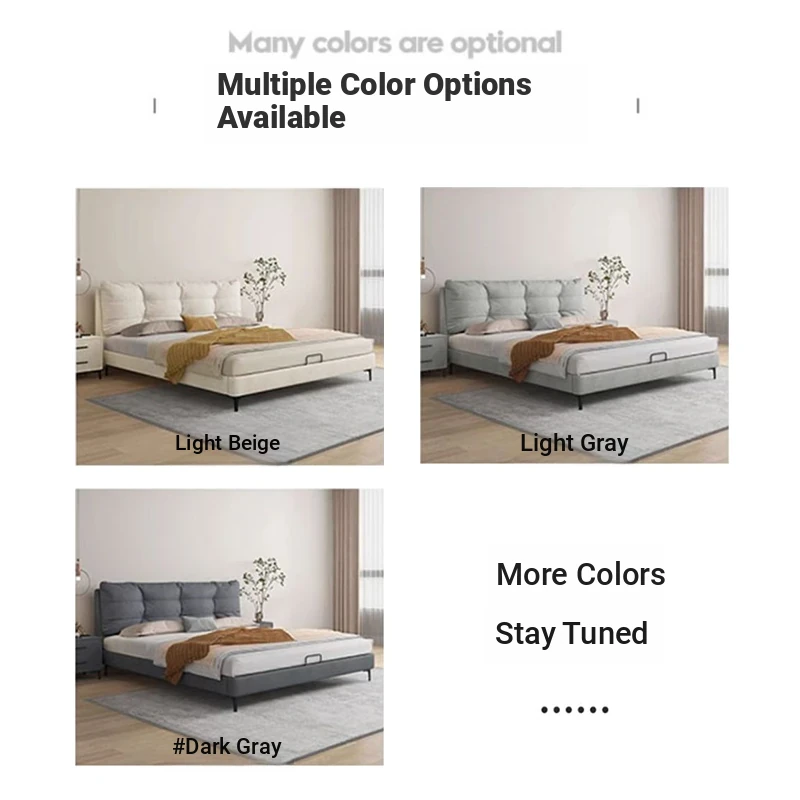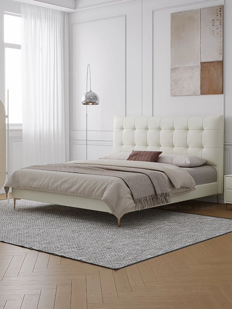 "2024 New Luxury Cream Upholstered King-Size Bed: Modern Minimalist Design for Master Bedrooms - Elegant and High-End Couple's Wedding Bed"
