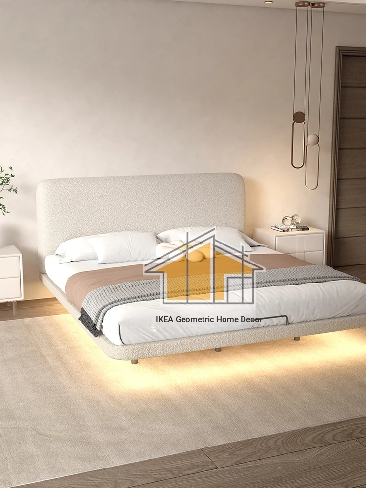 "Elegant Minimalist Italian-French Style Floating Bed with Soft Headboard - Perfect for Small Spaces, Ideal for Couples and Princess-themed Bedrooms, Perfect for Home and Wedding Use"