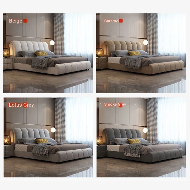 Elegant Cream Cloud Bed - Modern Fabric Upholstered Double Bed for Master Bedroom, 1.8m Size, Soft and Chic Design, Perfect for Newlyweds - Stylish and Comfortable Luxury Furniture