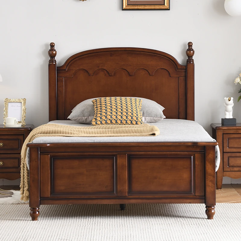 Solid American Oak Bed - Retro Style Full Solid Wood Furniture for Couples, Available in 1.5m, 1.8m, and 2m Sizes - Mortise and Tenon Construction for Durability and Elegance